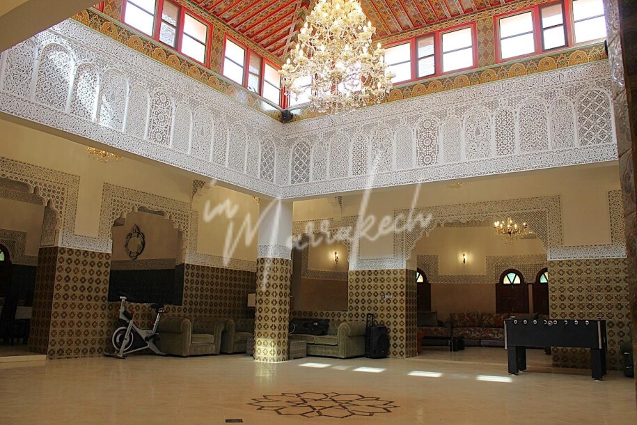 Votre agence immobilière InMarrakech a le plaisir de vous proposer une grande villa avec salle de fête édifié sur un joli jardin de 10 000m² à la sous location, route de Souihla, à 10min de Targa comprenant une grande salle des fête avec quatre salons, deux chambres avec salle d’eau, plusieurs toilette, cuisine et de l’autre côté quatre grande suite avec salle d’eau dont une avec deux chambres ,petit salon, un sous-sol avec hammam ,une cuisine pour les petits déjeunés, chambre de personnel, un spa