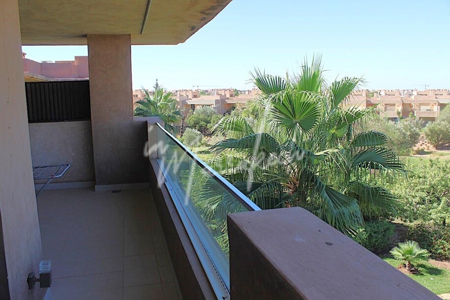 Votre agence immobilière In-Marrakech vous propose à la LOCATION ce très beau appartement situé sur le golf prestigia situé au 2eme étage avec ascenseur comprenant une entrée, salon avec terrasse, coin salle à manger, une cuisine, deux belles chambres, deux salle d’eau,